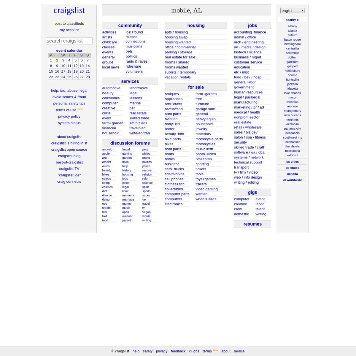 Craigslist Mobile Al Jobs Apartments For Sale Services Community And Events Are Na